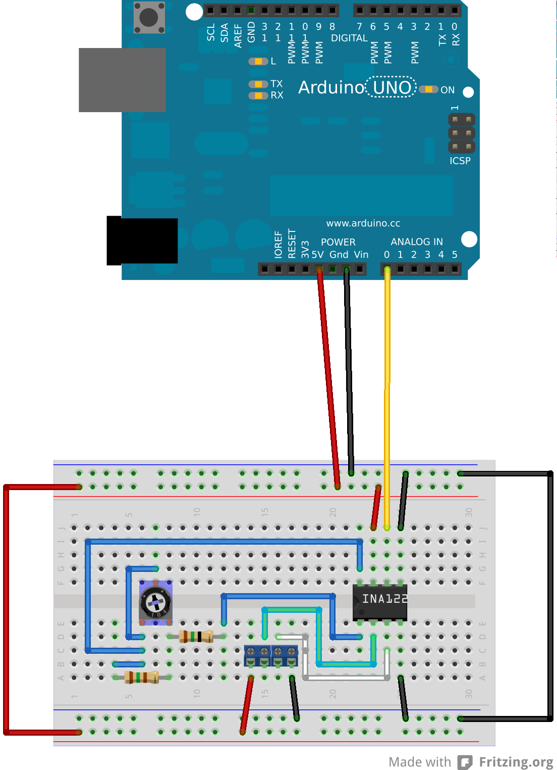 A large version of the Fritzing (breadboard) diagram of the completed thrust circuitry for Shepard v1.1.