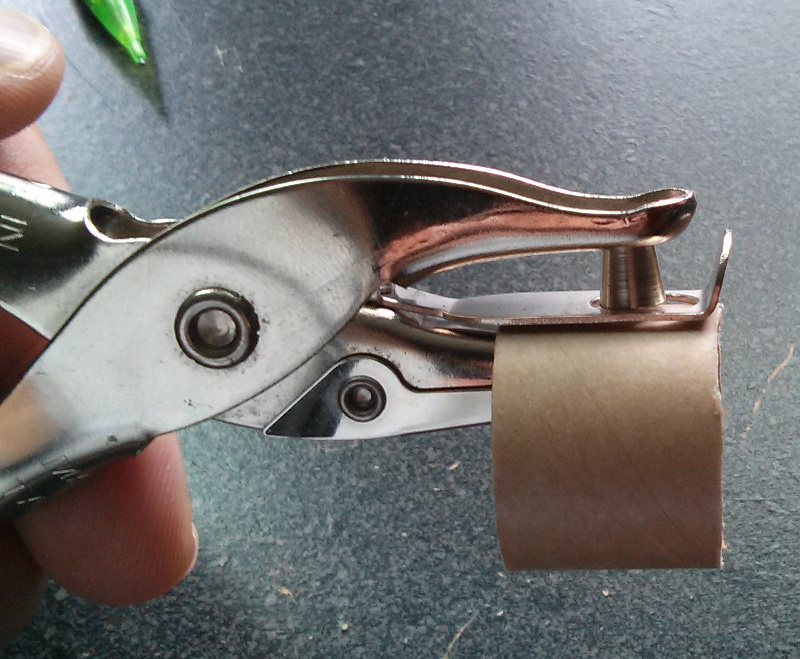 Using a hole punch to put a hole in the temperature probe mount tube for the IR sensor to "see" through.