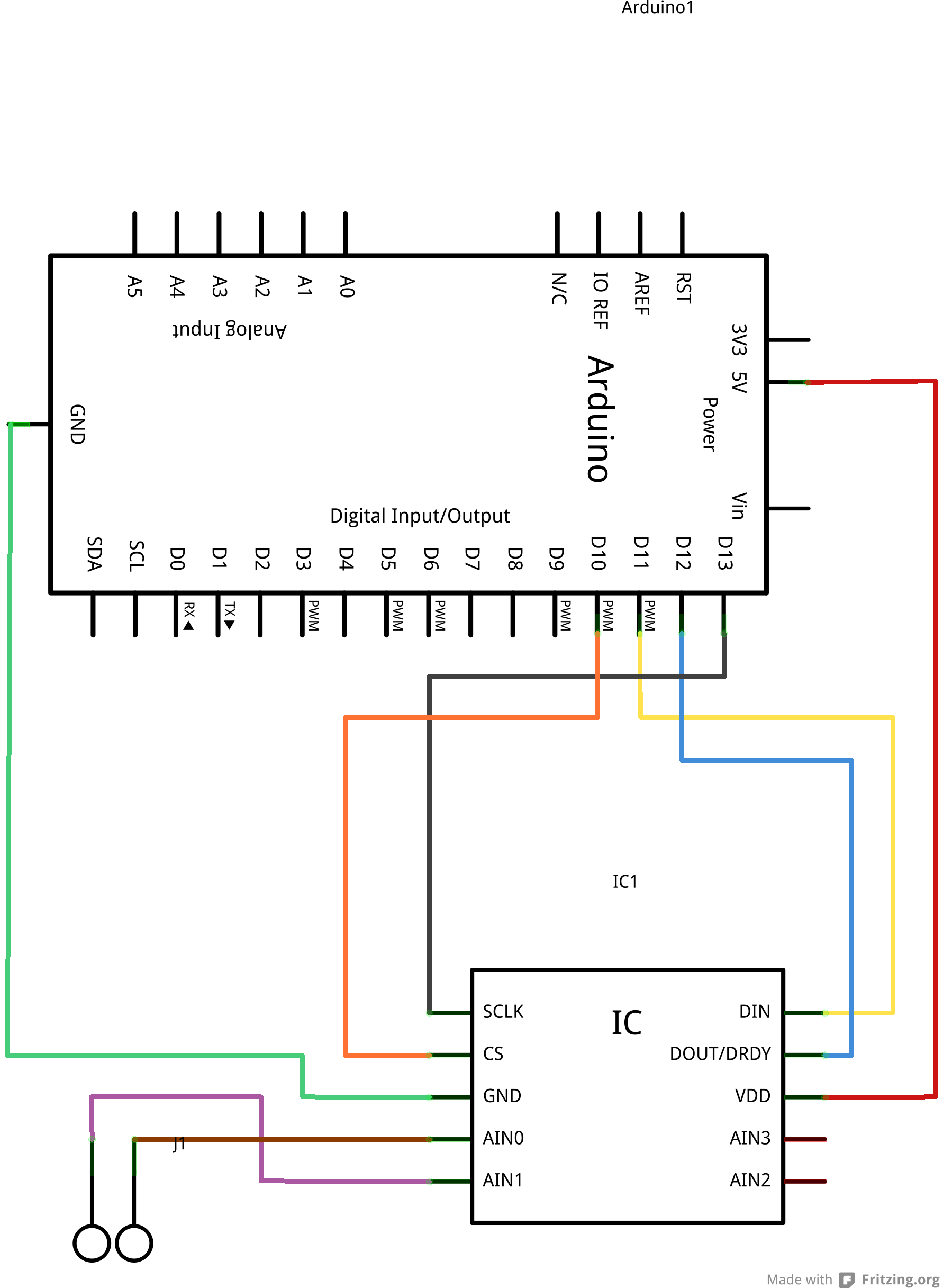 Large size of the Fritzing generated schematic for the ADS1118 temperature sensing circuit.