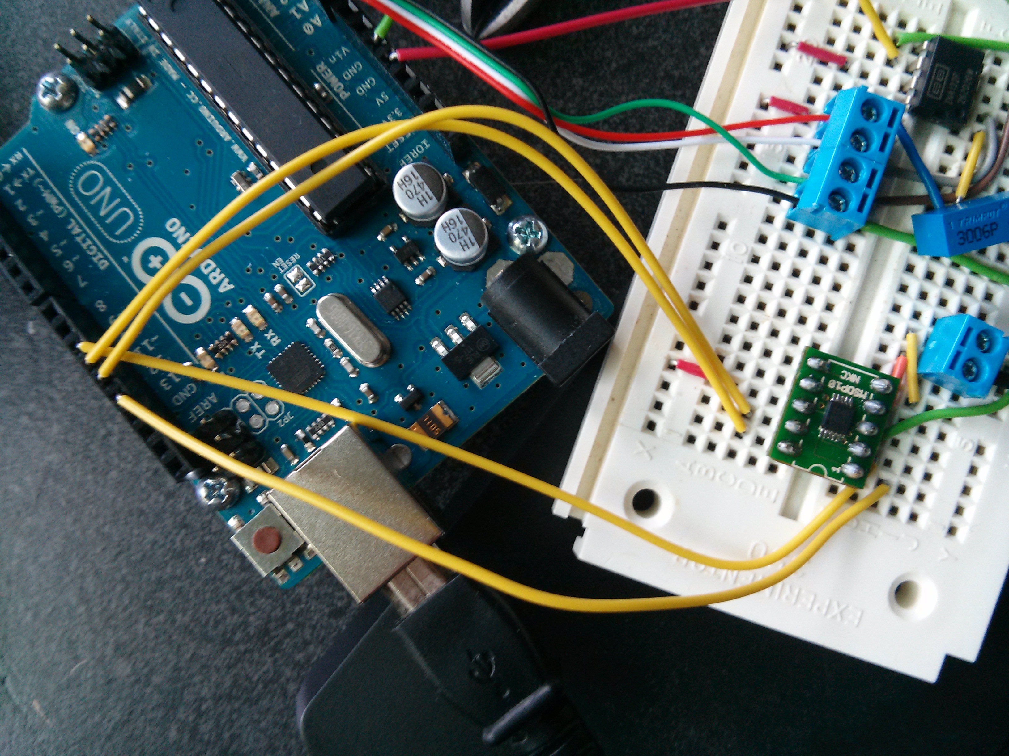 A photo of the breadboarded ADS1118 based temperature sensing circuit for Shepard v1.1.