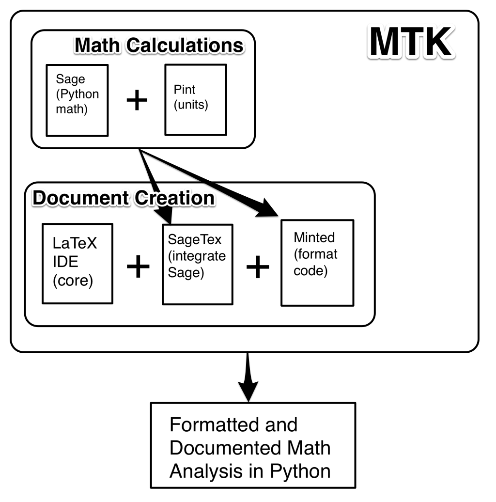 MTK combines Sage and LaTeX with support libraries for both packages to deliver the required math and documentation capabilities. The mathematical analysis in implemented by running Python code in Sage. The Python units library, Pint, is included in the Sage environment so hardware developers can include units as a core feature in every analysis. Consistently and correctly managing units is essential in engineering projects as can be seen with Mars Climate Orbiter. This probe missed its orbital insertion maneuver and was lost when the developers and operators mis-communicated about the units for the orbital insertion burn.