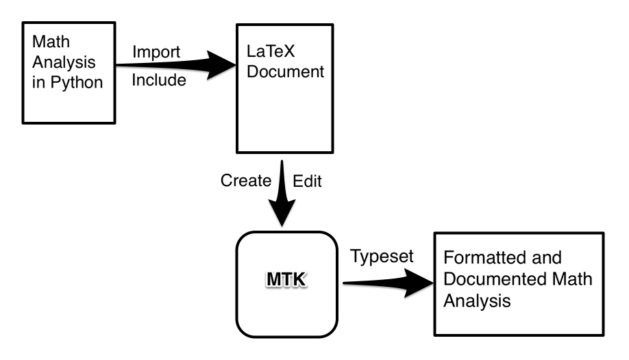 An MTK analysis is composed of two main components: the implementation of the analysis in Python and the documentation of the analysis in LaTeX. A developer can start with either the implementation or the documentation. Note, Mach 30's OSHW Ground Rules urge developers to interweave the two actions ("Document before, as, and after you act").